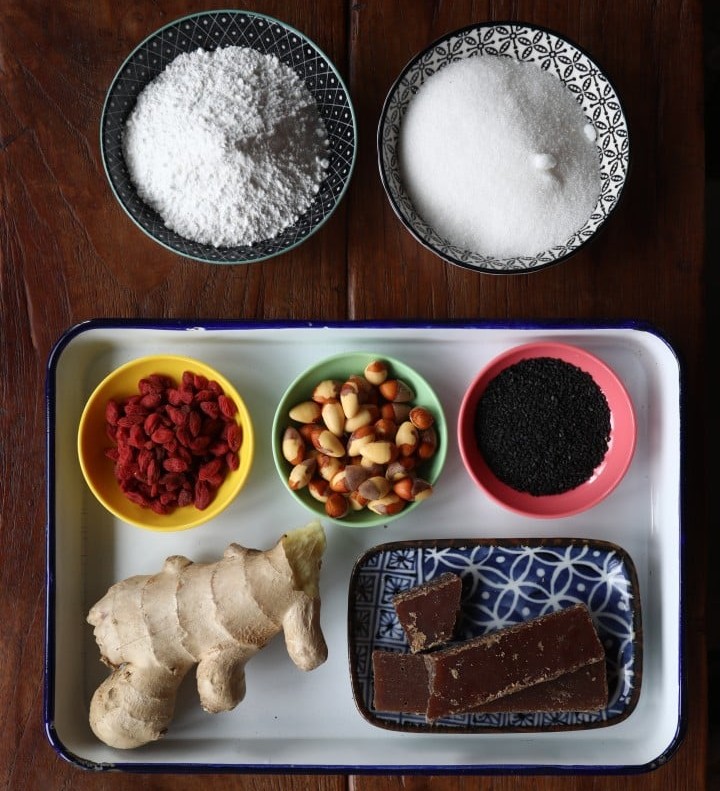 • 60克黑芝麻或炒花生,研磨成细粉